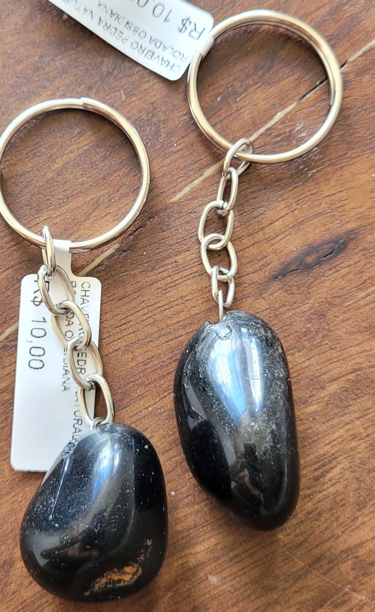 CHAVEIRO PEDRA NATURAL ROLADA OBSIDIANA