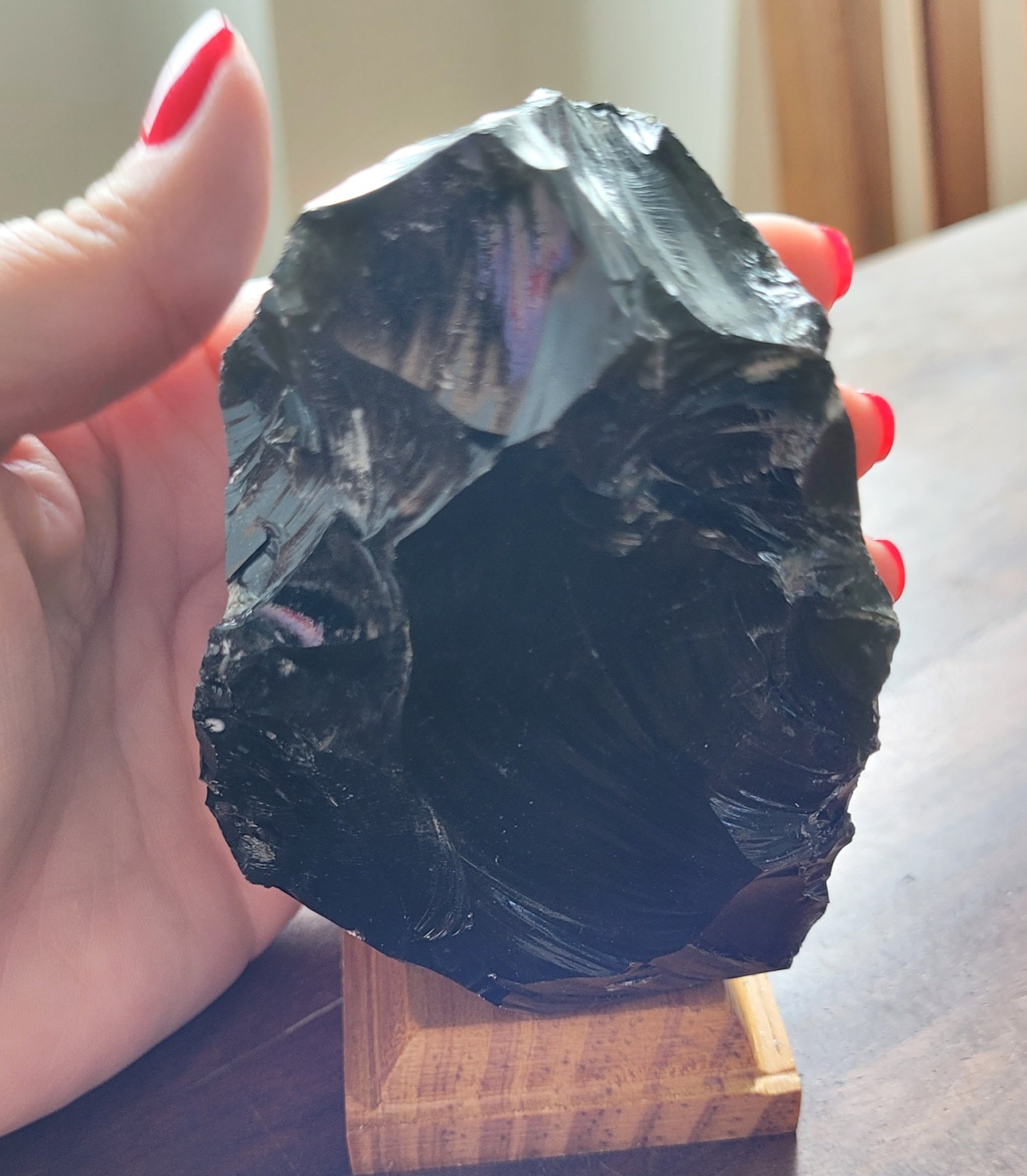 PEDRA NA BASE DE MADEIRA OBSIDIANA